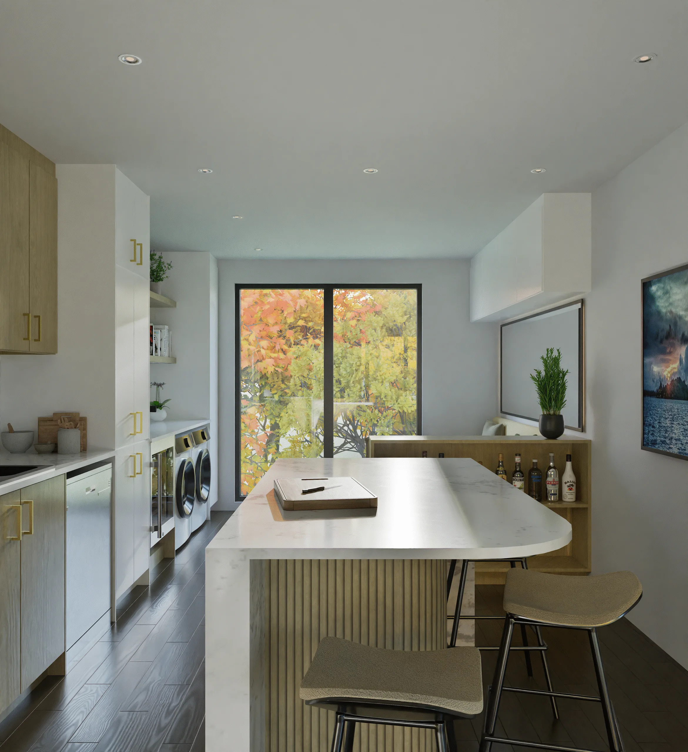Dans ce projet situé à Lachine, notre cliente rêvait d’un renouveau complet pour sa cuisine, qui n’avait pas changé depuis plus de 30 ans. Le défi : transformer un espace étroit et tout en longueur en un lieu à la fois lumineux, chaleureux et pleinement fonctionnel.